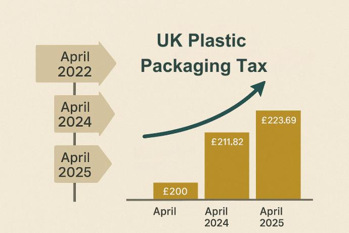 隨著全球推動可持續包裝的力度加大,英國通過更新塑料包裝稅(Plastic Packaging Tax,PPT)來加強環保政策。自2025年4月1日起,該稅率將提高至每公噸223.69英鎊,適用於任何含有少於30%回收內容的塑料包裝。